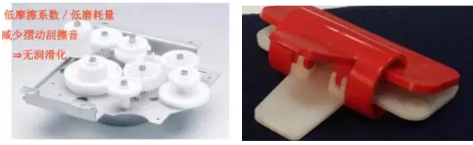 在绝大多数的应用领域中,塑料齿轮多采用POMPA6/66POM因刚性和耐疲劳性高于PA且吸湿性小,具有更广泛的应用。POM齿轮相对金属齿轮有较多的优点:质量轻、工作噪音小、耐磨损、无需润滑、可以成型较为复杂的形状、大批量生产成本较低。对于一些对摩擦性能要求较高或者有低噪音需求的零部件来说,普通牌号的POM可能无法满足要求,这时就需要耐磨型POM